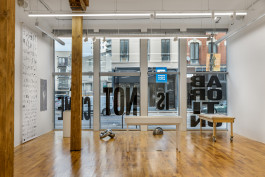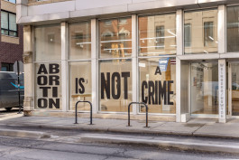 In 2016, Weinberg/Newton Gallery hosted an exhibition entitled Your body is a battleground in support of reproductive rights and a pro-choice Illinois. Installed at our previous location, the building’s management forced the gallery to remove Aleksandra Mir’s text-based artwork Keep Abortion Legal from outward-facing windows along Superior Street in River North. In alternating baby blue and soft pink letters, the statement was deemed unrepresentative of building management and all tenants.